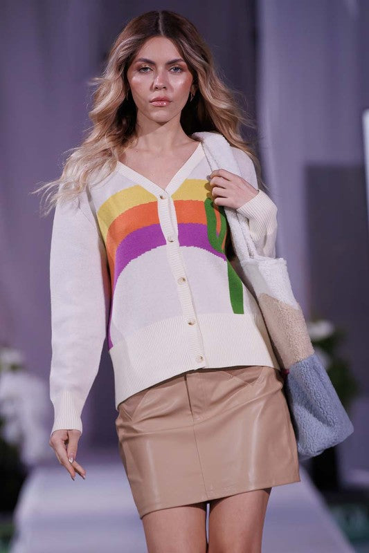 BiBi Flower Patch Striped Half Button Sweater Vest