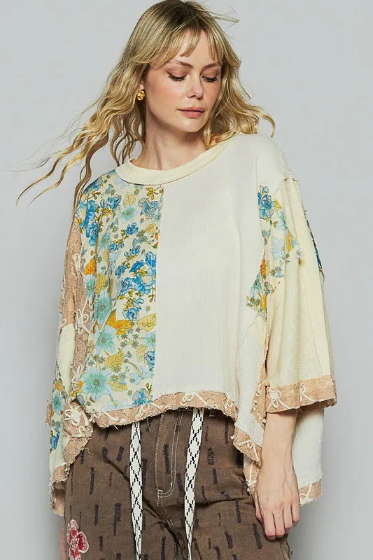 Flower Dropped Shoulder Long Sleeve Knit Top