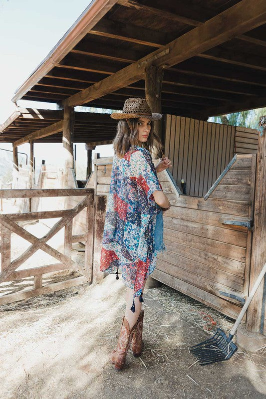 Allover Floral Print Kimono
