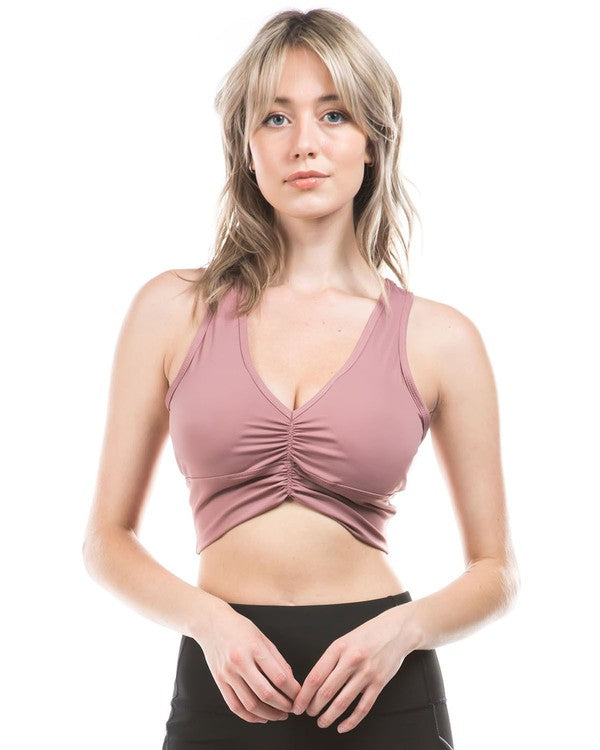 Deep V Drawstring Sports Bra Buttery Soft Fabric