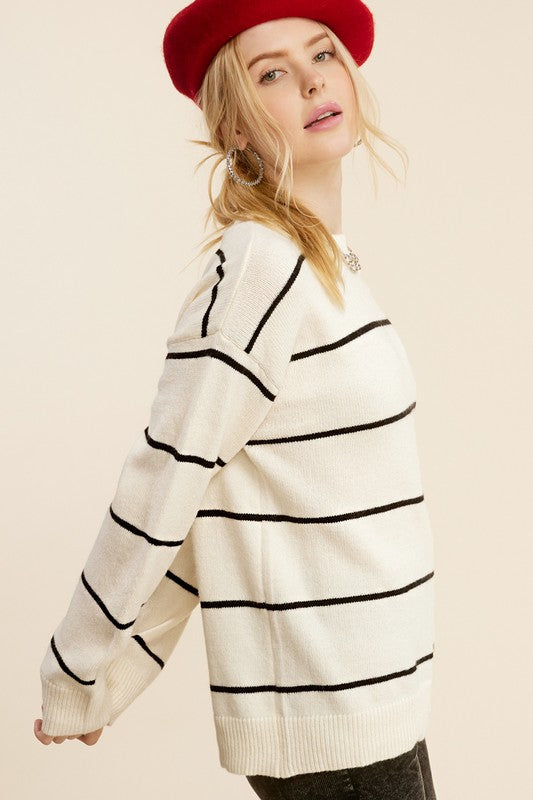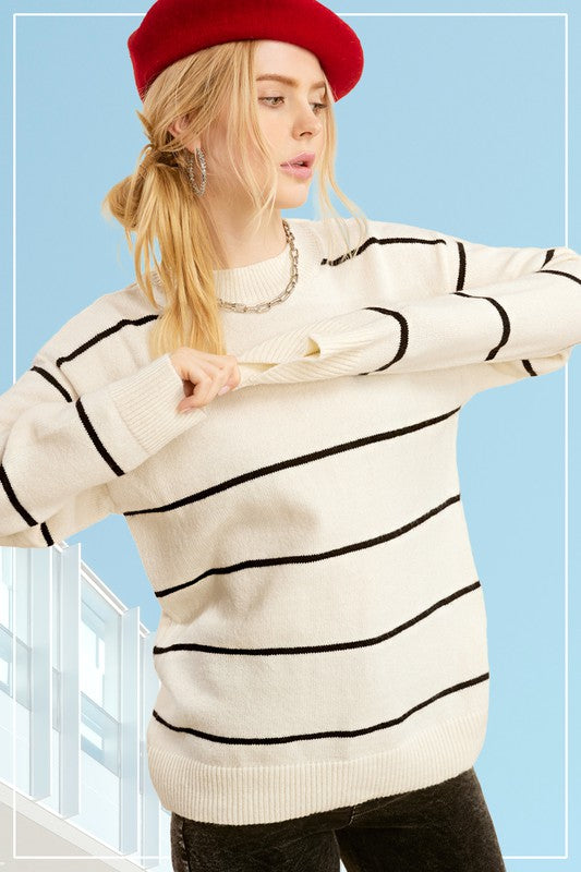 Introducing the Eunice Sweater, a timeless striped pullover that embodies a loose and comfortable fit. This versatile piece is destined to become your go-to option, seamlessly transitioning you through various seasons. With its cool and classic design, the Eunice Sweater is the perfect companion to pair with a skirt, shorts, or even structured denim. Elevate your style effortlessly with this adaptable and stylish sweater.