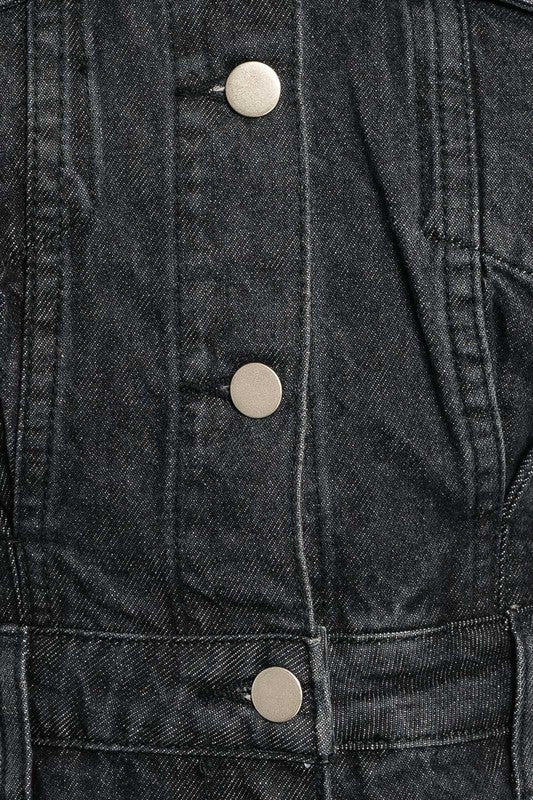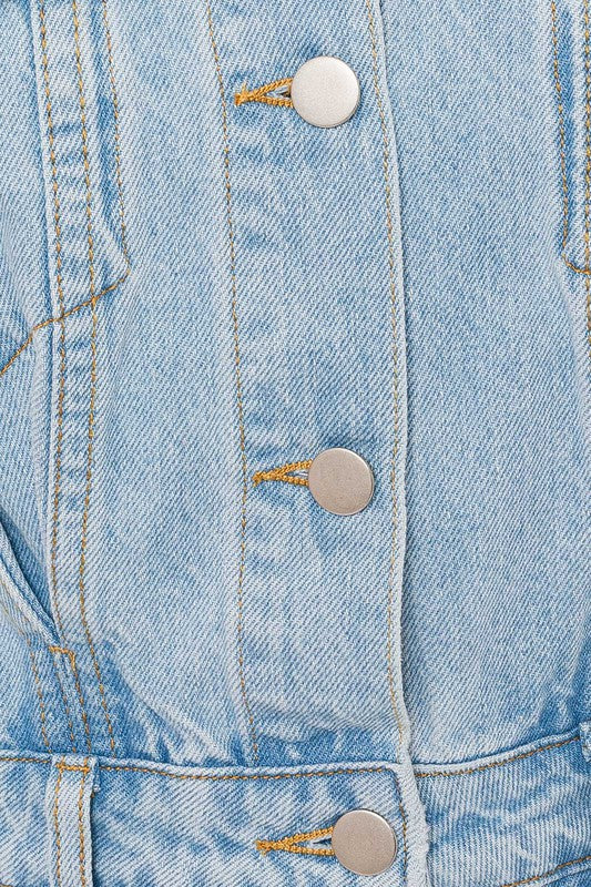 A versatile and stylish piece that combines the comfort of a romper with the timeless appeal of denim. This romper features long sleeves and is crafted from durable denim fabric, offering a chic and casual look.
