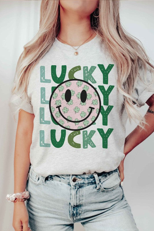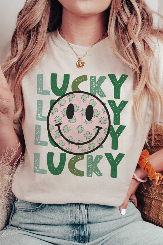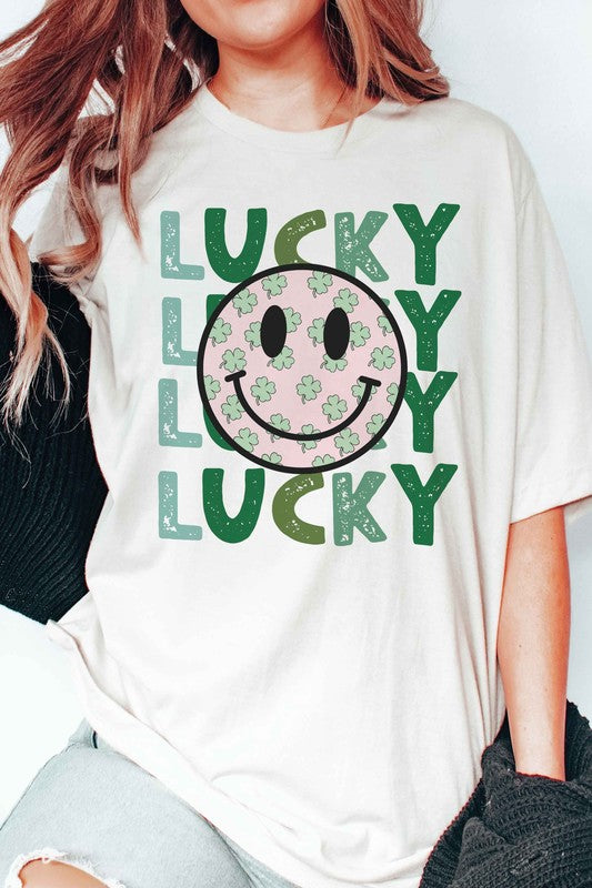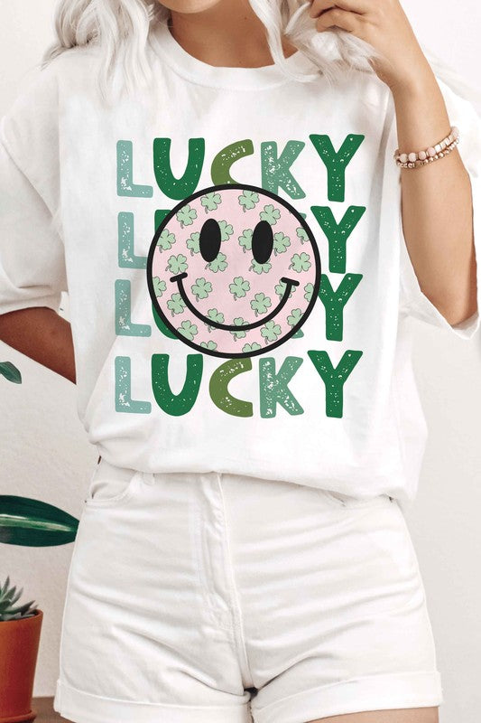 LUCKY CLOVER HAPPY FACE Graphic T-Shirt