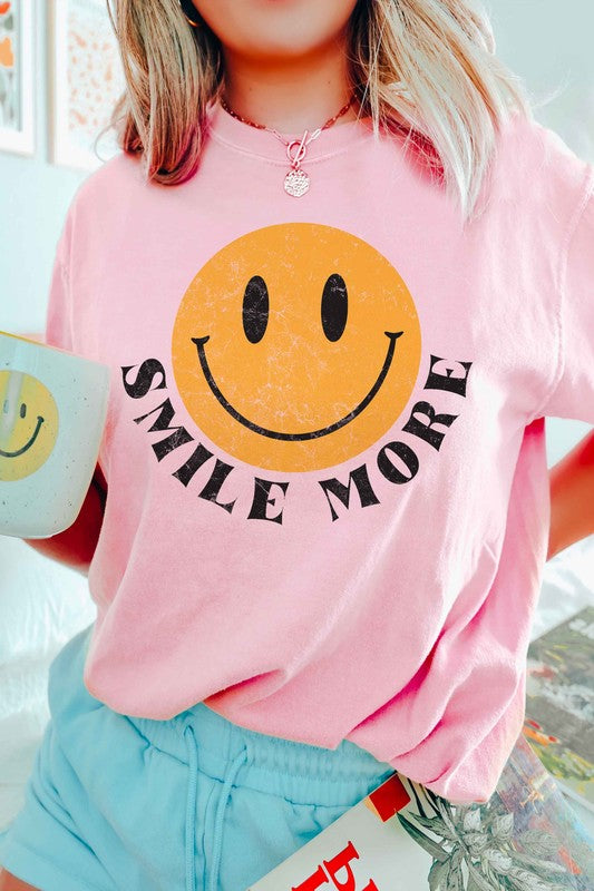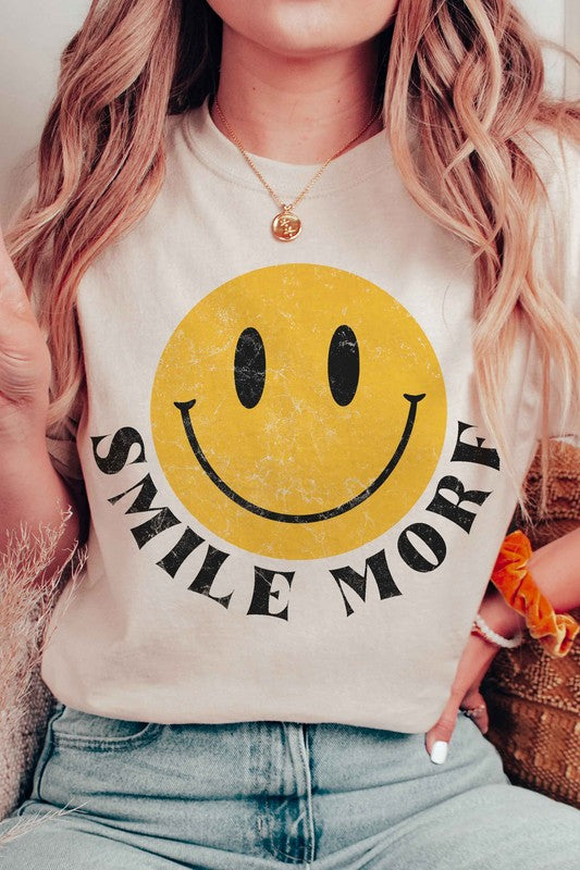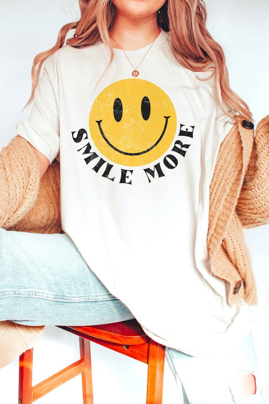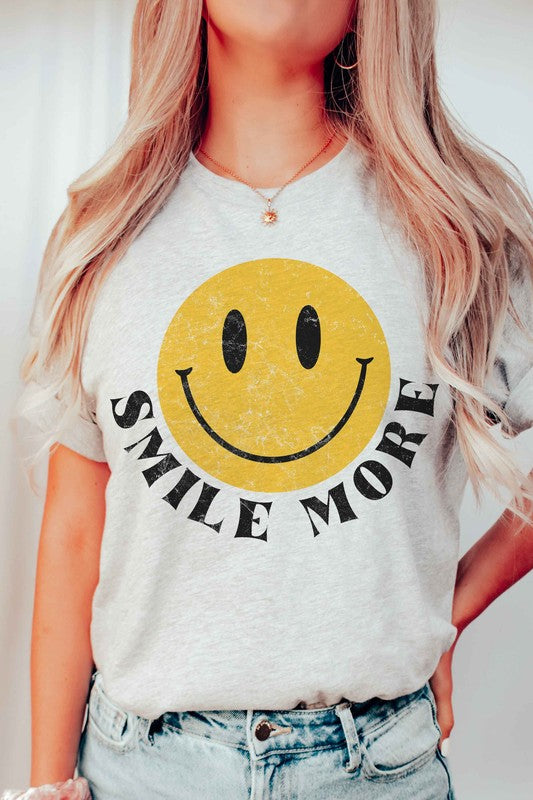 SMILE MORE HAPPY FACE GRAPHIC TEE
